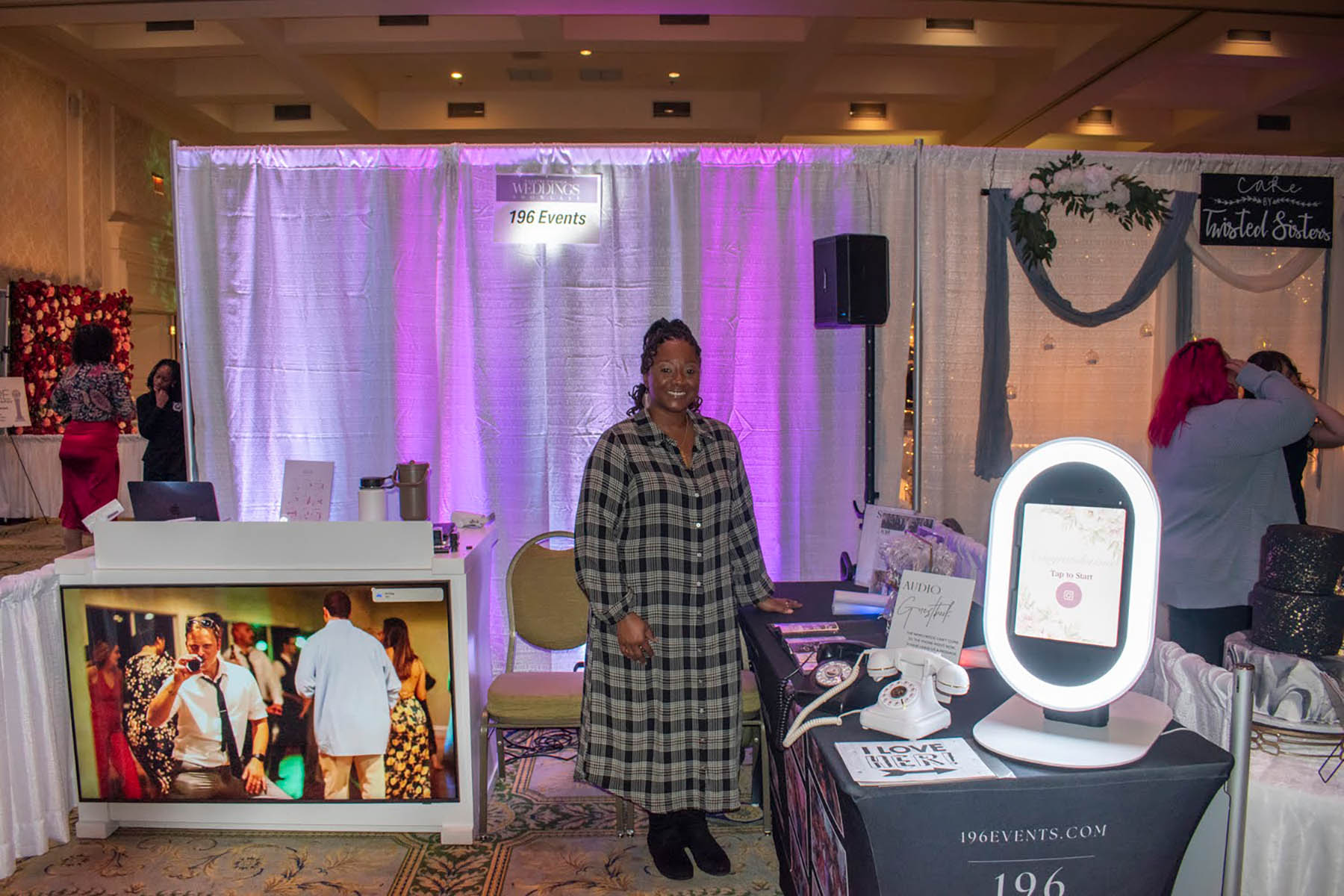 Booth: Includes a pipe and drape booth with an 8-foot back and 3-foot sides as well as a 6-foot rectangular table with linen, two chairs and a vendor sign.
